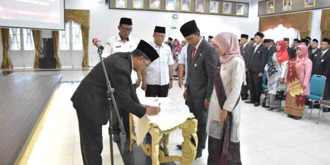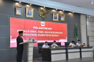 Sebanyak 98 orang kepala sekolah SMA/SMK Se-Sumbar dilantik dan dikukuhkan oleh Kepala Dinas Pendidikan Provinsi Sumatera Barat Drs. Barlius,MM Rabu (29/3/2023) bertempat di Pendopo Gubernuran Sumatera Barat.