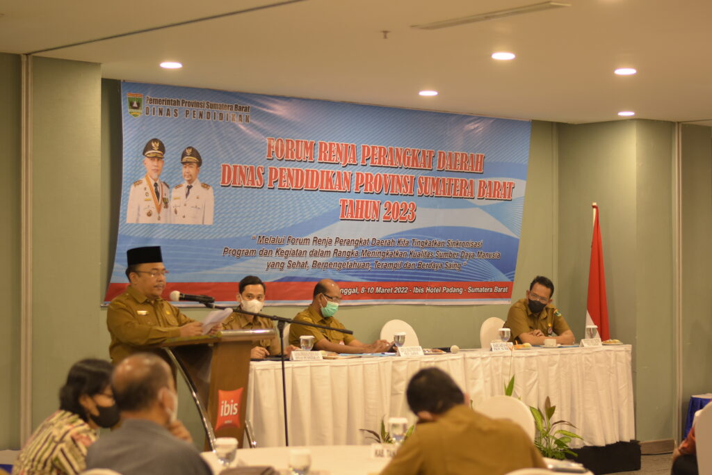 Sekretaris Daerah Provinsi Sumatera Barat Mengatakan Forum Renja Perangkat Daerah Dinas Pendidikan merupakan kegiatan strategis dalam rangka menyusun program atau kegiatan upaya mempercepat proses pembangunan di bidang Pendidikan di Sumatera Barat. Pendidikan merupakanUrusan Wajib yang dipenuhi sebagai dasar Pemenuhan Standar Pelayanan Pendidikan (SPM) sesuai Permendikbud 32 Tahun 2018. Dengan diposisikannya urusan Pendidikan sebagai urusan wajib, tentunya kita berharap agar program atau kegiatan di bidang ini berjalan secara selaras dan serasi mulai dari tingkat Nasional hingga sampai ke Daerah. Untuk itu, salah satu langkah yang harus dilakukan demiter wujudnya keserasian, keselarasan dan adanya sinkronisasi program / kegiatan mulai dari tingkat pusat hingga sampai ke daerah adalah melalui Forum OPD ini, sebagai wadah dalam memberikan informasi, berdiskusi serta mampu menampung kebutuhan-kebutuhan masyarakat sesuai dengan program/kegiatan nasional hingga program/kegiatan secara kedaerahan.