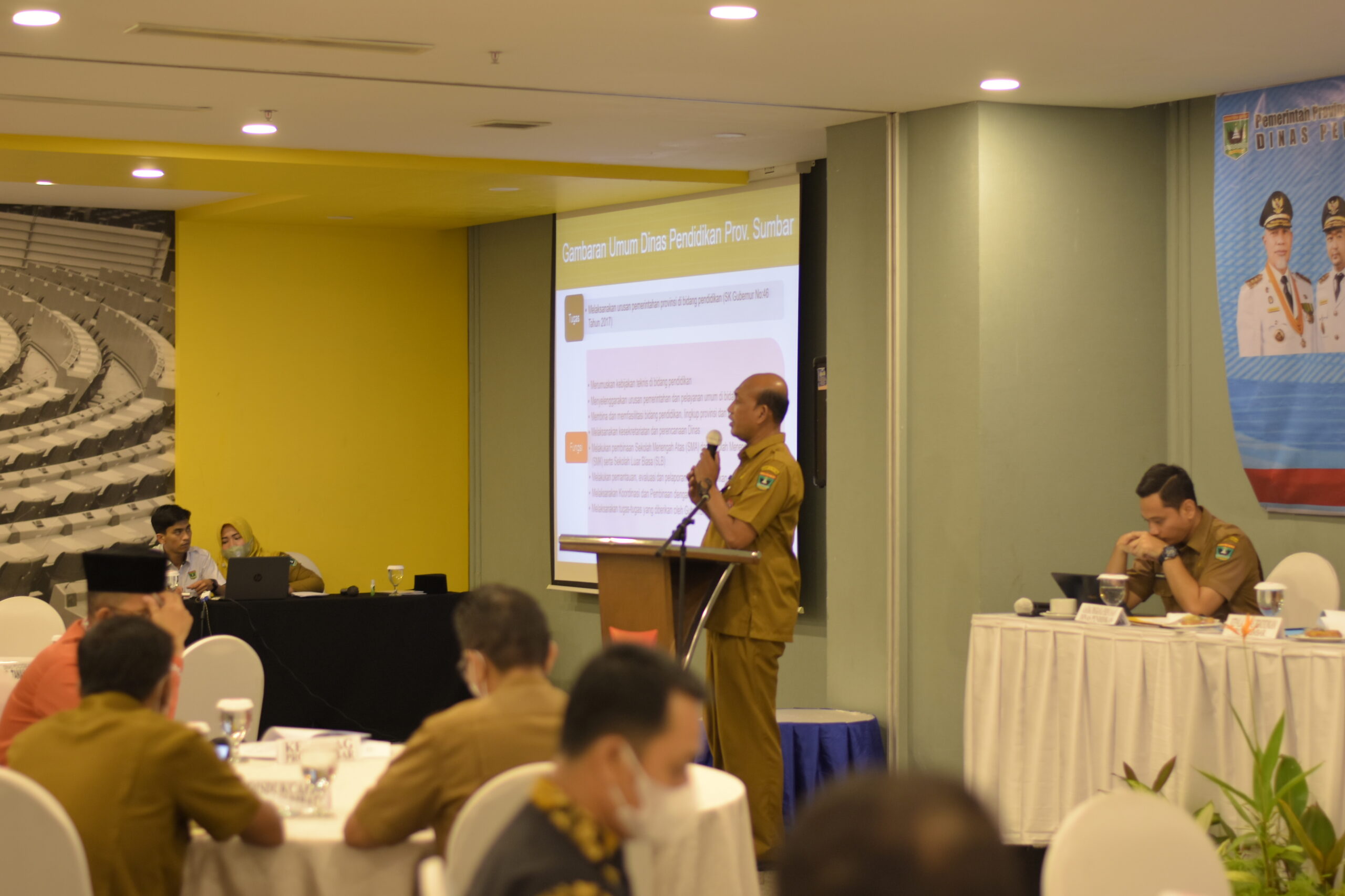 Narasumber di hadirkan yakni Direktorat Jenderal Pendidikan Menengah Kemendikbudristek RI secara zoom meeting dari Jakarta, Sekretaris Daerah Prov. Sumatera Barat, Kepala Dinas Pendidikan Prov. Sumatera Barat, KetuaKomisi V DPRD Prov. Sumatera Barat, BAPPEDA Prov. Sumatera Barat, Dewan Pendidikan Prov. Sumatera Barat.