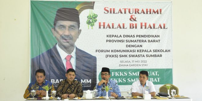 Ketua FKKS SMK Sumbar, mengucapkan terima kasih atas kehadiran Bapak Kepala Dinas Pendidikan dalam silaturahmi dan halal bihalal dengan FKKS SMK Swasta Sumbar.
