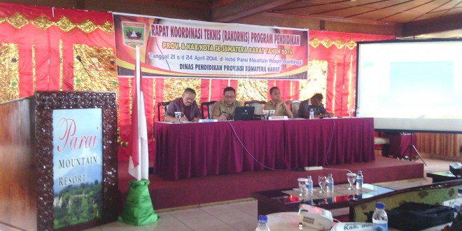 Menindaklanjuti Rapat Koordinasi Sinkronisasi Program Pendidikan antara Pusat, Provinsi dan Kab/Kota se Sumatera Barat Tahun 2014 yang telah dilaksanakan pada tanggal 3 s.d 5 April 2014 di Basko Hotel Padang, Maka Dinas Pendidikan Provinsi Sumatera Barat mengadakan Rapat Koordinasi Teknis Kebijakan Operasional Program antara Provinsi dan Kab/Kota se Sumatera Barat Tahun 2014. Kegiatan ini dilaksanakan di Hotel Parai Mountain Resort Bukittinggi dimulai dari tanggal 21 s.d 24 April 2014. Kegiatan ini secara umum bertujuan untuk mewujudkan sinergi dalam rangka pengambilan kebijakan pada tahapan evaluasi, penyusunan, dan pelaksanaan program kegiatan dibidang pendidikan antara Dinas Pendidikan Provinsi dengan Dinas Pendidikan Kab/Kota