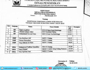 Gebyar Pendidikan Dinas Pendidikan Provinsi Sumatera Barat 2018 telah selesai digelar. Hari terakhir perhelatan Gebyar Pendidikan 2018, Jum’at(28/9) di halaman Kantor Dinas Pendidikan Provinsi Sumatera Barat, yang mengusung tema “Generasi Milenial, Berinovasi, Berkarya dan Berkreasi”. Perhelatan ini diikuti oleh siswa/i SMA/SMK/SLB se Sumatera Barat ikut ambil bagian dalam acara yang berlangsung selama tiga hari mulai dari 26 s/d 28 September 2018 ini .