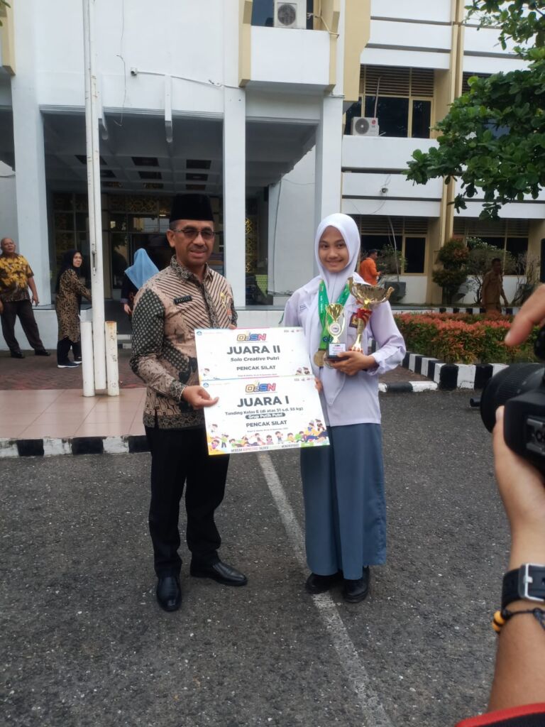 Kepala Dinas Pendidikan Provinsi Sumatera Barat, Drs. Barlius. MM memberikan penghargaan dan medali kepada Claudia Putri Herlinda Siswi SMKN 7 Padang. Claudia Putri Herlinda meraih 2 (dua) mendali di tingkat Nasional. Satu Medali Emas didapatkan dari Cabang Lomba Pencak Silat Putri, dan Satu Medali Perak dari kategori Solo Kreatif Pencak Silat Putri.