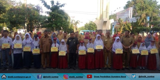 Penyerahan beasiswa tersebut dilakukan secara simbolis serta didampingi orang tua mereka oleh Kepala Dinas Pendidikan Provinsi Sumatera Barat selaku Pembina koperasi Burhasman pada apel senin pagi dihalaman kantor tersebut (28/8/17).