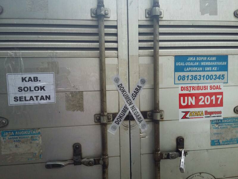 Sebanyak 992 koli Naskah soal Ujian Nasional Berbasis Kertas dan Pensil (UNKP) tingkat SMA/Ma dan Paket C didistribusikan ke Kab/Kota Provinsi Sumatera Barat. Soal ini diberangkatkan dari gudang penyimpanan sementara PT. Grafika Jaya di Kis Mangunsakoro Padang (8/4/2017).
