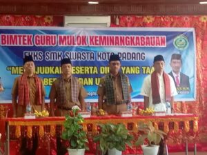 Oleh sebab itu sejak tanggal 26-29 September 2022 Bimtek Muatan Lokal Keminangkabauan untuk kalangan Guru SMK se-Kota Padang di SMK Teknologi Plus, jalan Belanti Indah No 5, Lolong Belanti, Padang Utara, Kota Padang.