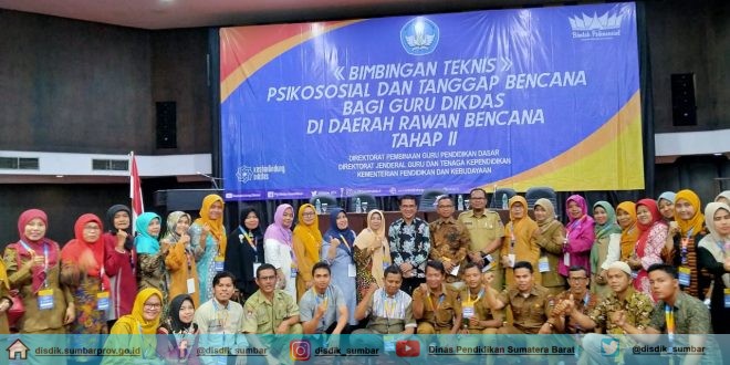 Direktorat Jenderal Guru dan Tenaga Kependidikan (Ditjen GTK) Kemendikbud menyelenggarakan kegiatan Bimbingan Teknis Psikososial dan tanggap bencana bagi Guru Pendidikan Dasar se-Sumbar. Kegiatan tersebut diadakan di Hotel Kryad Bumi Minang Padang 29 oktober s/d 1 November 2019.