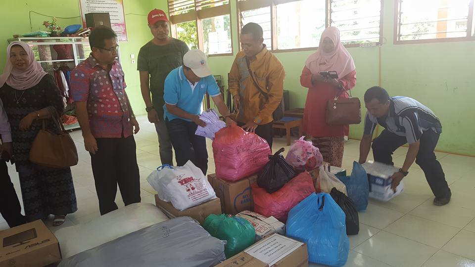Adapun yang dibagikan ialah 6 unit komputer, 3 unit printer, 2 unit LCD, Seragam sekolah, uang tunai, buku pelajaran dan buku sekolah, serta sembako.