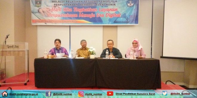 Pembekalan pengelolaan perpustakaan oleh Dinas Pendidikan Provinsi Sumatera Barat melalui UPTD Baltekkomdik kepada petugas pengelola Pustaka sekolah Se-Sumatera Barat, bekerja sama dengan Badan Perpustakaan Nasional RI bertujuan untuk meningkatkan kemampuan para pengelola perpustakaan. acara ini diadakan di Hotel Grand Zurry Padang (19 s/d 21 Juli 2017).
