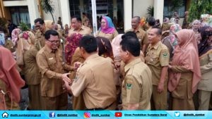 Apel pagi bersama hari kertama masuk kerja setelah libur Idul Ftri 1438 H yang digelar di halaman Kantor Disdik Sumbar pada Senin pagi tersebut langsung dipimpin Sekretaris DPRD (Setwan), H Raflis.