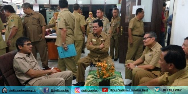 Sekitar 99 persen Pegawai Negeri Sipil (PNS) dan tenaga honorer di lingkungan Dinas Pendidikan Provinsi Sumatera Barat (Disdik Sumbar) hadir pada hari pertama masuk kerja pasca libur Idul Fitri 1438 H, Senin (03/7/2017). Ini terlihat dari ramainya PNS dan tenaga honorer yang mengikuti apel pagi bersama. Kalau pun ada yang tidak hadir pada apel pagi bersama tersebut, umumnya mereka sudah memperoleh izin atau karena kondisi kesehatan mereka tidak begitu prima, kata Gubernur Sumbar Irwan Prayitno yang turut hadir dalam sidak di Lingkungan Pemprov Sumbar.