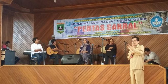 Dinas Pendidikan dan Kebudayaan Provinsi Sumatera Barat melalui Bidang Kebudayaan gelar Apresiasi Seni Sastra dalam musik yang dilaksanakan dalam bentuk “Pentas Sakral “,Senin( 10-10 ) bertempat di aula lantai III Baltekkomdik.