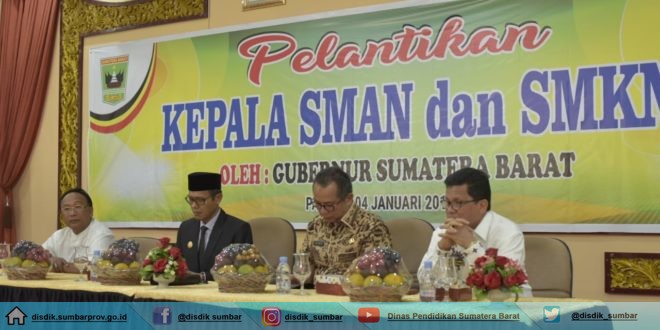 Sebanyak 83 orang kepala sekolah SMA/SMK Se-Sumbar yang dilantik dan dikukuhkan oleh Gubernur Sumatera Barat Irwan Prayitno (IP), Jum’at (4/1) bertempat di Pendopo Gubernuran Sumatera Barat.
