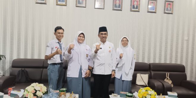 Kepala Dinas Pendidikan Provinsi Sumatera Barat Drs. Barlius, MM menerima siswa peserta LDBI (Lomba Debat Bahasa Indonesia) Sumbar yang akan bertanding Tingkat Nasional di Jakarta tgl 1 s.d 4 Agustus 2023. Mereka datang didampingi oleh orang tua masing – masing dan guru dari masing – masing sekolah, Jumat, (28/7/2023).