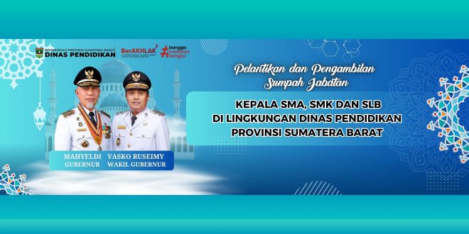 Gubernur Sumatra Barat, Mahyeldi Ansharullah, melantik 12 kepala sekolah SMA, SMK, dan SLB di lingkungan Dinas Pendidikan Provinsi Sumbar pada Selasa pelantikan dan pengambilan sumpah jabatan berlangsung di Auditorium Istana Gubernur Sumatera Barat.