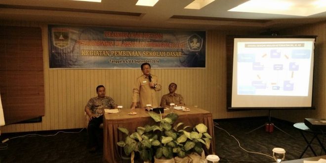 Kepala Dinas Pendidikan dan Kebudayaan Provinsi Sumatera Barat H. Burhasman Bur, MM membuka acara dan sekaligus memberikan arahan tentang K13 Kurikulum 2013 kepada Calon Petugas Pendampingan pelaksanaan kurikulum 2013 Kab/Kota Tingkat SD Kegiatan Pembinaan Sekolah Dasar di axana hotel Padang.