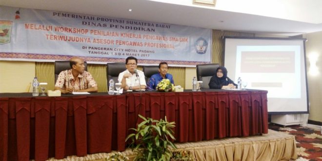 Sehubungan dengan itu, Dinas Pendidikan Provinsi Sumatera Barat melaksanakan penguatan Tupoksi Pengawas SMA dan SMK tingkat SMA dan SMK se-Sumatera Barat, melatih calon asesor untuk penilaian kerja pengawas. Acara tersebut berlangsung pada tanggal 1 s/d 4 Maret 2017 di Pangeran City Hotel. Dr Burhasman, MM yang menjadi Narasumber sekaligus membuka kegiatan ini tersebut.