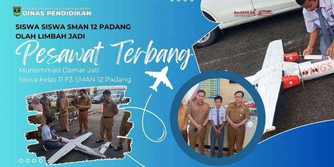 Padang Inovasi membanggakan datang dari Muhammad Damar Jati, siswa kelas F3 SMAN 12 Padang, yang berhasil menciptakan pesawat terbang mini dari limbah sterofoam dan komponen elektronik bekas. Karya kreatif ini mendapat apresiasi langsung dari Kepala Dinas Pendidikan Provinsi Sumatera Barat, Habibul Fuadi, usai demonstrasi penerbangan di halaman Dinas Pendidikan Sumatera Barat, Selasa 21 Oktober 2025