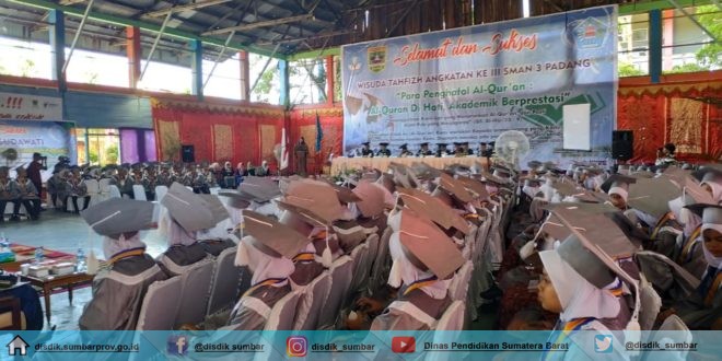 Murid SMAN 3 Padang sedang berbahagia hari ini, pasalnya sekolah ini mewisudakan sebanyak 250 Siswa/i nya yang Tahfidz Qur’an. Tak hanya para murid yang bergembira, juga para orang tua dan guru serta seluruh keluarga besar serta Alumni SMAN 3 Padang. Acara ini di laksanakan di Hall SMAN 3 Padang (28/3). Wisuda Tahfidz Quran ini adalah agenda tahunan dari SMAN 3 Padang.