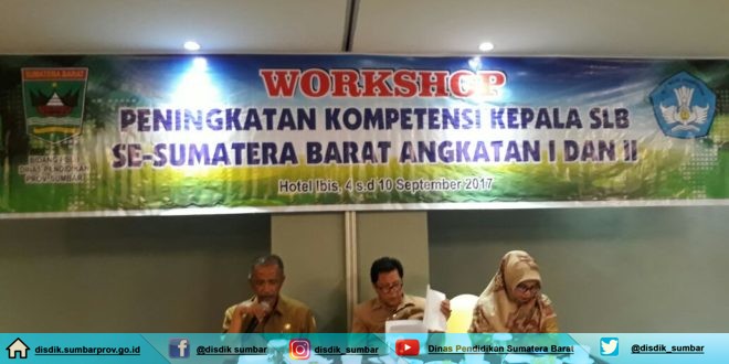 Dinas Pendidikan Provinsi sumbar gelar Workshop dalam rangka Peningkatan Kompetensi kepala SLB Se-Sumbar Provinsi di Hotel Ibis, Padang, Selasa(5/9/17).