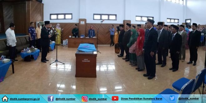 Sebanyak 19 orang kepala sekolah SMA/SMK Se-Sumbar yang dilantik dan dikukuhkan oleh Wakil Gubernur Sumatera Barat Nasrul Abit, Jum’at (26/5) bertempat di Aula Baltekkomdik Dinas Pendidikan Provinsi Sumbar, Padang.