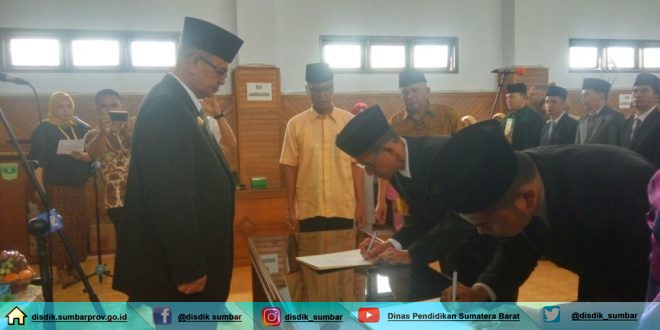 Sebanyak 32 orang kepala sekolah SMA/SMK Se-Sumbar yang dilantik dan dikukuhkan oleh Wakil Gubernur Sumatera Barat Nasrul Abit, Jum’at (27/10) bertempat di Aula Baltekkomdik Dinas Pendidikan Provinsi Sumbar, Padang.