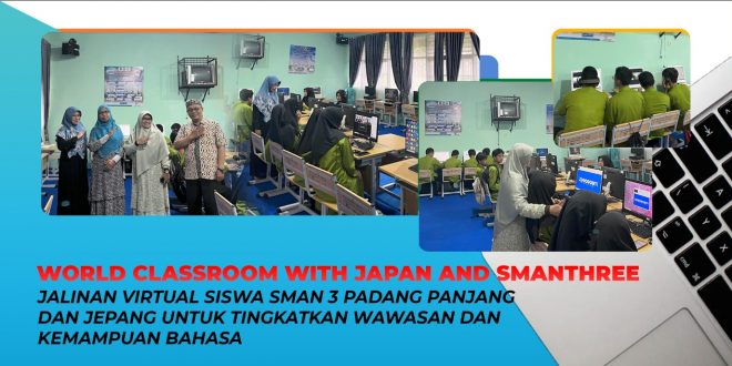 Suasana Laboratorium Multimedia SMAN 3 Padang Panjang pagi itu tampak berbeda. Sebanyak puluhan siswa duduk rapi di depan layar komputer, antusias mengikuti pertemuan virtual melalui Zoom bersama siswa-siswi dari Jepang.
