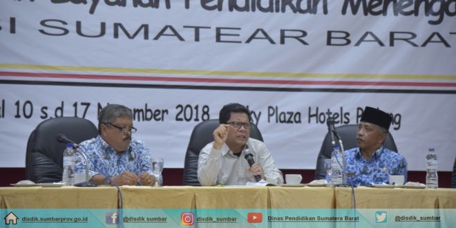 Dalam pengarahannya Kepala Dinas Pendidikan Provinsi Sumatera Barat Drs. Burhasman, MM mengatakan, Standar Pelayanan Minimal ( SPM ) adalah ketentuan mengenai jenis dan mutu pelayanan dasar yang merupakan urusan pemerintah wajib yang berhak diperoleh setiap warga negara salah satunya adalah pelayanan pendidikan.