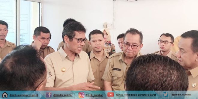 Sekitar 99 persen Pegawai Negeri Sipil (PNS) dan tenaga honorer di lingkungan Dinas Pendidikan Provinsi Sumatera Barat (Disdik Sumbar) hadir pada hari pertama masuk kerja pasca cuti bersama Idul Fitri 1440 H, Senin (10/06). Ini terlihat dari ramainya PNS dan tenaga honorer yang mengikuti apel pagi bersama. Kalau pun ada yang tidak hadir pada apel pagi bersama tersebut, umumnya mereka sudah memperoleh izin atau karena kondisi kesehatan mereka tidak begitu prima, kata Gubernur Sumbar Irwan Prayitno yang turut hadir dalam sidak di Lingkungan Pemprov Sumbar.